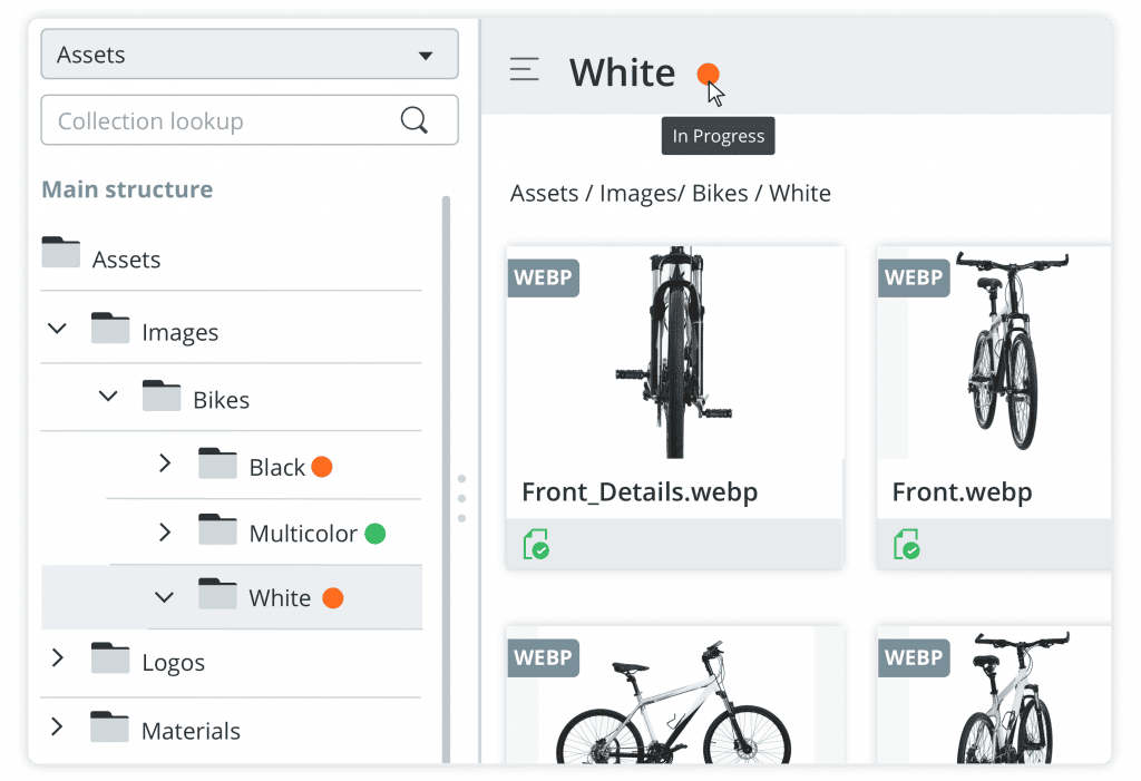 Ein weiteres Beispiel mit einem anderen Szenario. Du arbeitest an einem Produktblatt. Das Designteam hat das Asset bereits hochgeladen, aber es ist noch ein Entwurf. In diesem Fall möchtest du natürlich nicht, dass es als fertig markiert und in die Produktion überführt wird (oder noch schlimmer, auf deine Website hochgeladen wird). Denn es ist ja noch in Bearbeitung. Es handelt sich immer noch um eine unvollendete Arbeit, die aktualisiert, überprüft und freigegeben werden muss.