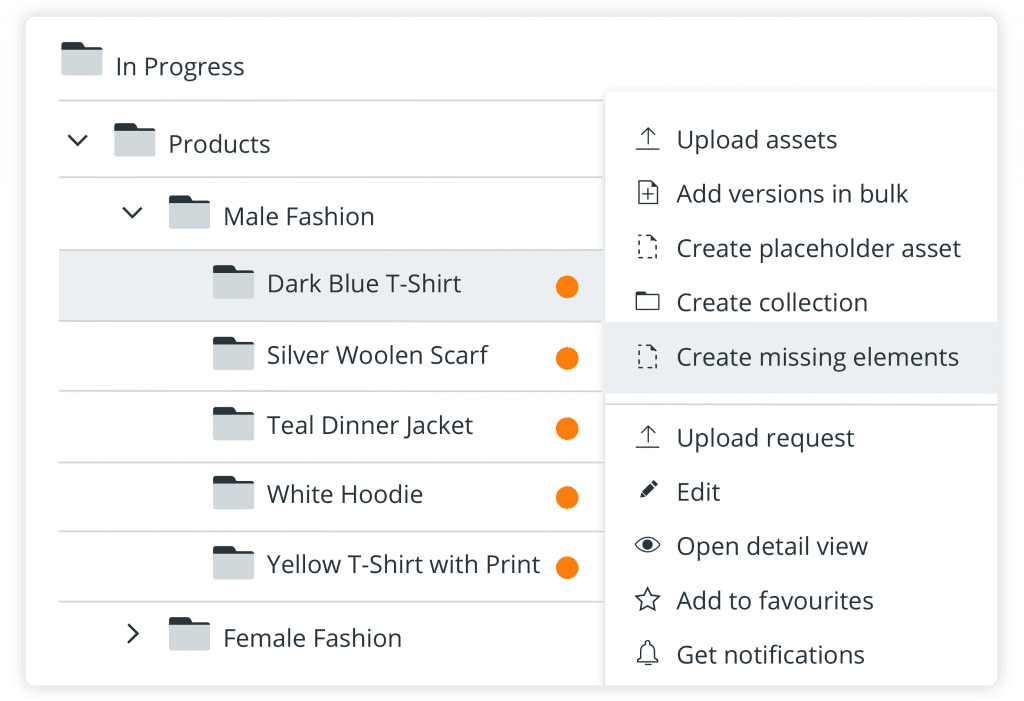 Content Kuratoren können jetzt automatisch Platzhalter-Assets für alle erforderlichen Elemente erstellen.