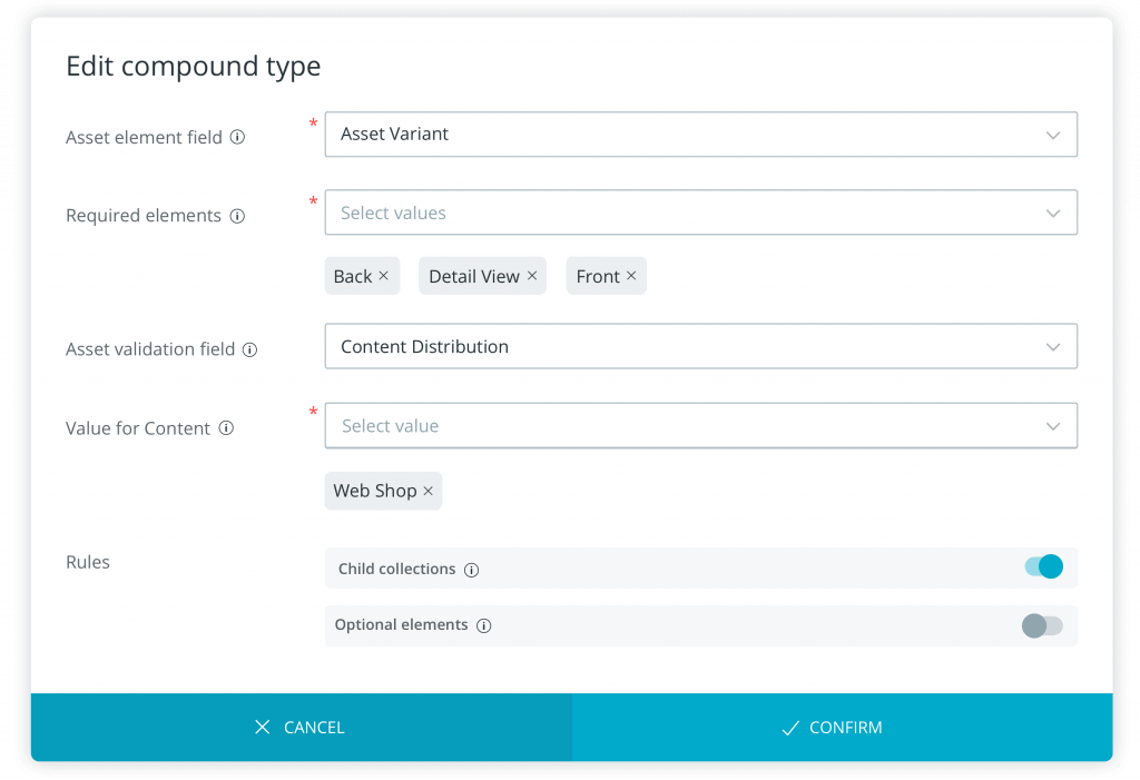 In unserem letzten Update haben wir die Möglichkeit eingeführt, eine Regel (nennen wir sie ‚asset present‘) hinzuzufügen, um die „Vollständigkeit“ eines Compound Objects zu definieren. Eine solche „Vollständigkeit“ würde im Grunde beschreiben, welche Elemente für das Compound Object erforderlich sind, um als komplett zu gelten.