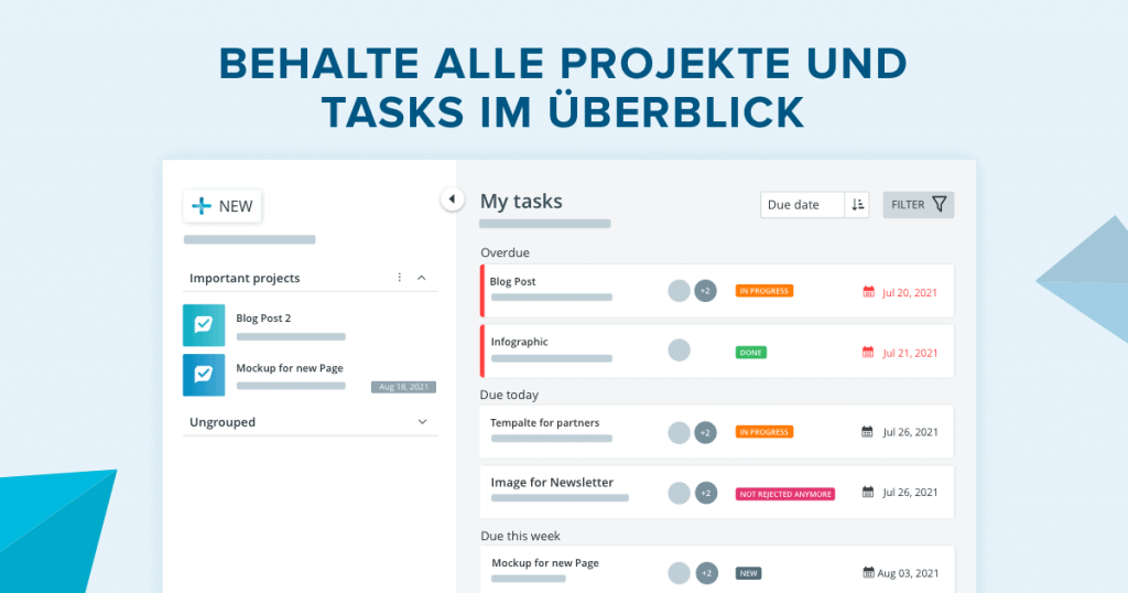 - Ein neues, aufgeräumtes Cockpit, das alle deine Projekte und Aufgaben anzeigt.