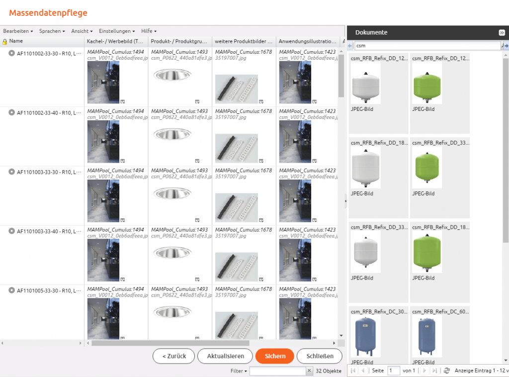 Der Leuchttisch des xmedia AssetBrowsers zeigt alle Assetinformationen und bietet eine Massendatenpflege mit Vorschaufunktion.