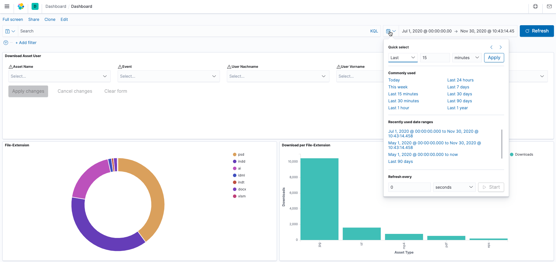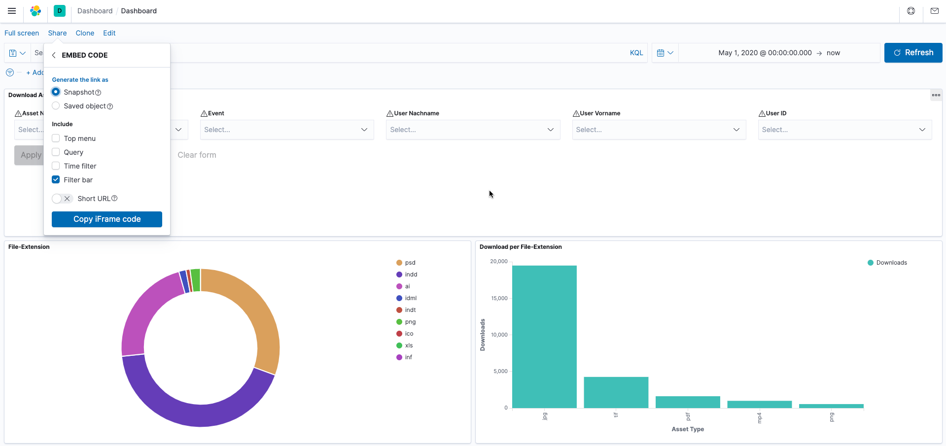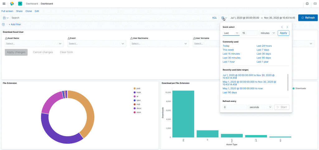 The Kibana integration delivers all the information of typical activities from CELUM to the open source analysis platform Kibana, allowing them to be visualised quick and easy.