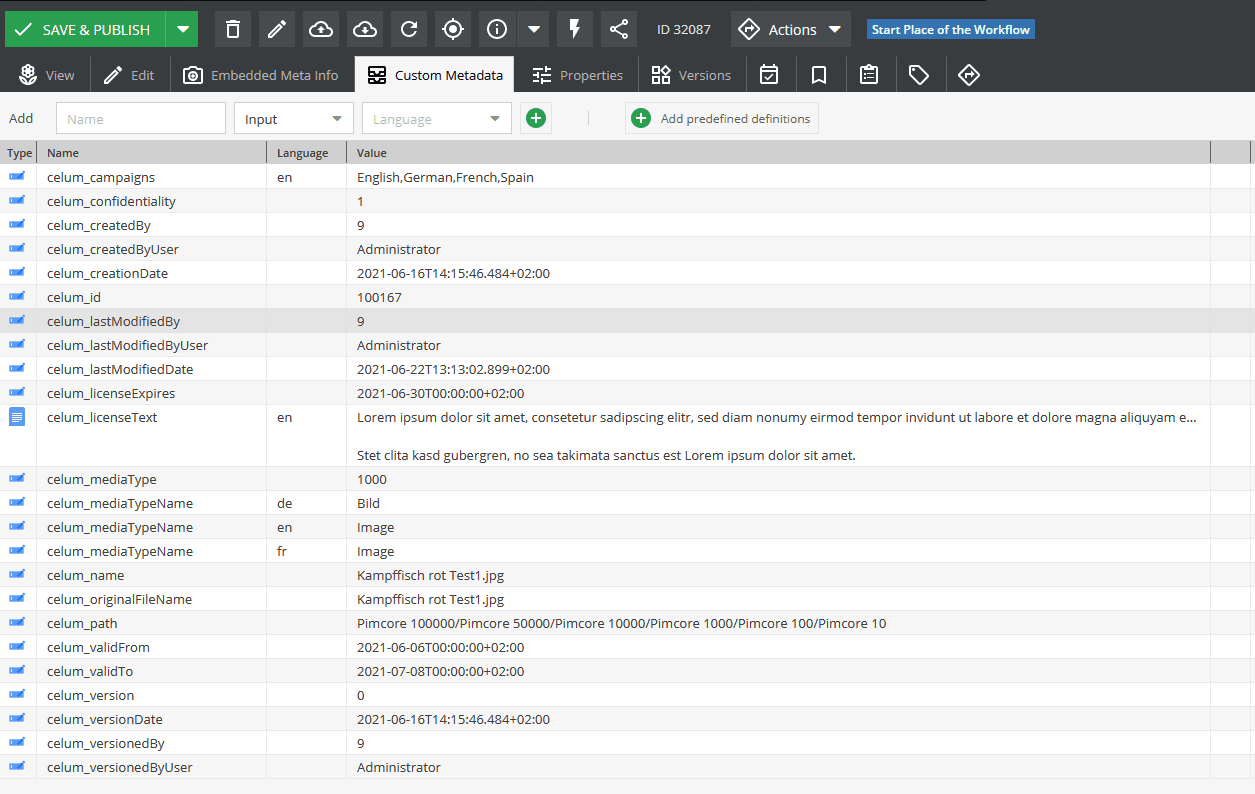 When an asset is used in Pimcore, CELUM will save the ID, type and name of the object where the asset is used.